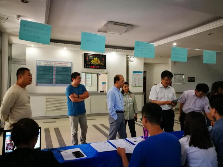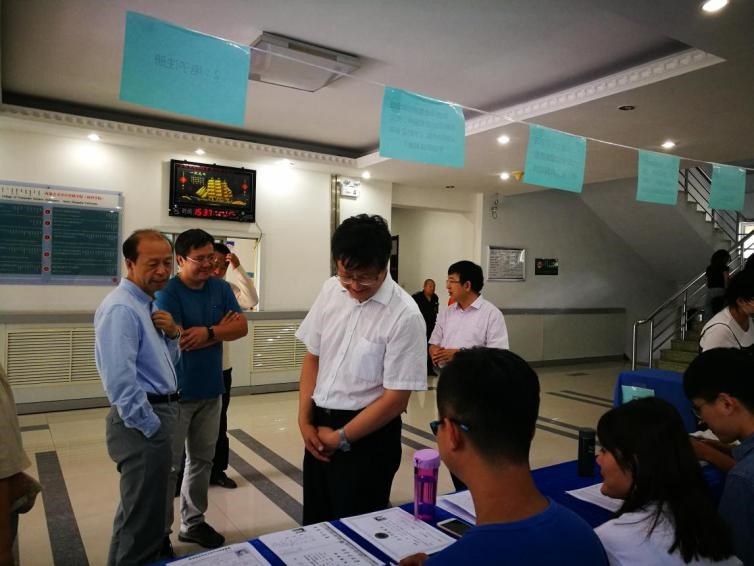 陈国庆董事长、高光来副董事长、研院常务副经理刘志亮、研院副经理乔宏刚视察报到现场,辅导员李濛老师、教务办各位老师参与新生报到工作。在各级领导、老师和研会志愿者的配合下,新生报到工作圆满完成。