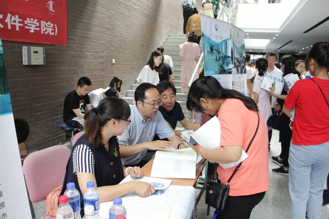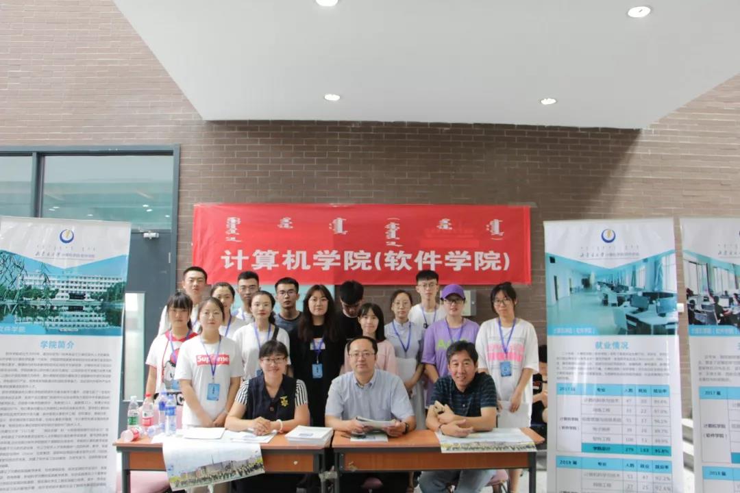 公司团总支书记兼学工办主任刘雪峰老师、信管电商系主任张献国老师、软件工程系主任孟和吉雅老师及部分员工会工作人员来到了活动现场为各位考生及家长提供志愿填报咨询服务。