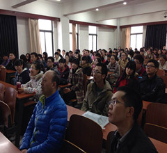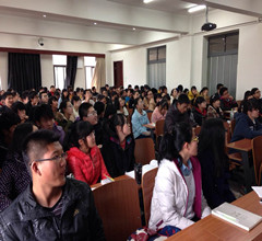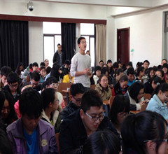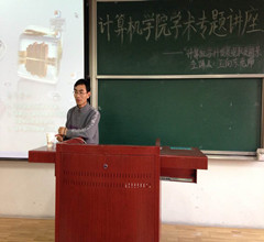 王老师首先从国内的计算机学科发展前景入手,分析了“以BAT为代表的巨头动作不断”,“各种创业公司层出不穷”等情况。他指出21世纪是一个充满机遇的时代,从信息化到计算机化,计算机学科占据着重要位置,同学们应学会运用计算机科学的基础概念去提出问题,去求解问题。之后王老师用生动幽默的语言分析了国内硕士和博士的特点,希望大家从兴趣出发,从兴趣中找到乐趣,做好学术科研工作。随后王老师耐心解答了同学们关于计算机专业考研方向、未来就业方向等各个问题。整个讲座在十分融洽的氛围中进行。最后,高老师对本次讲座作总结性发言。