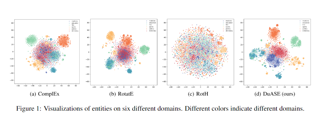 具体而言,DuASE在同一个阿基米德螺旋上对具有相同关系的实体进行编码,有效区分不同领域的实体。为防止跨域嵌入的重叠,DuASE进一步利用正则化函数确保同一三元组内的头实体和尾实体沿各自的域空间螺旋。因此,在对多域知识图进行建模时,DuASE能够更精确地捕捉域信息和实体间的依赖关系,从而优化知识图的嵌入表示。此外我们还构建了多域数据集n-MDKG,并在n-MDKG和其他三个基准数据集上验证了DuASE的有效性。