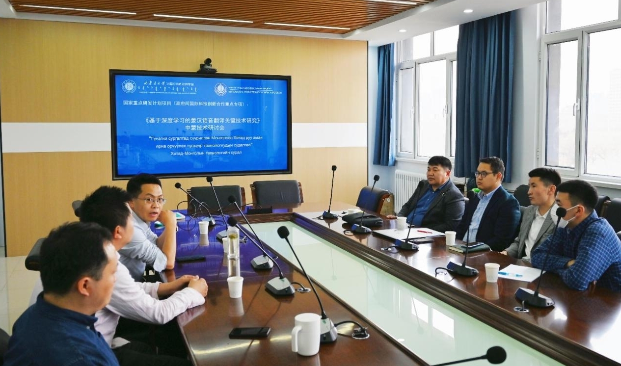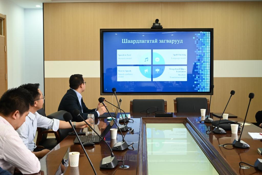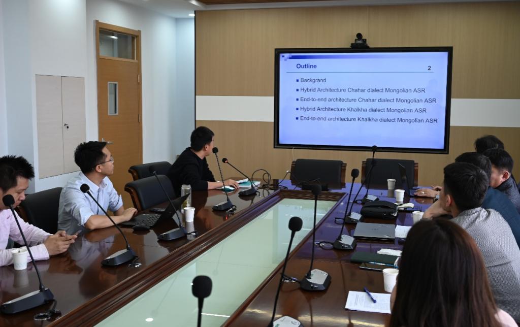 本次会议就双方合作交流情况、相关进展以及蒙古语智能信息处理最新研究技术等进行了探讨。会上,飞龙教授首先对项目建设期间取得的重要研究成果进行了详细汇报。境外合作方蒙古国科公司数学与数字技术研究所所长奥干巴特尔教授对项目在建设期间取得的资源建立和研究成果进行了汇报。项目组成员张晖副教授、刘瑞研究员、王勇和博士就蒙古文OCR关键技术及应用、蒙古语语音合成最新技术、蒙古语语音识别最新技术进行了技术分享。蒙古国科公司数学与数字技术研究所苏德贾木斯博士生、达瓦苏荣博士生就蒙古语语音信息处理、图像文字识别进行了技术分享。