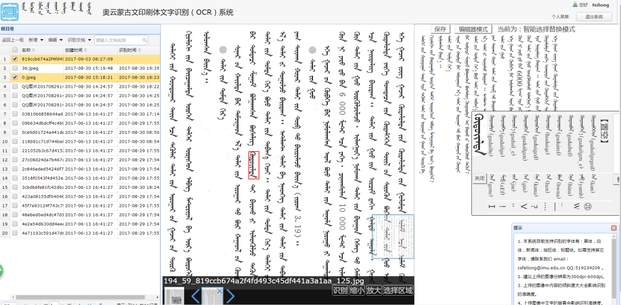 在内蒙古自治区成立70周年,EMC易倍官方网站成立60周年之际,emc易倍蒙古文信息处理重点实验室成功研发了新型蒙古文印刷体识别(OCR)系统(奥云蒙古文OCR系统)为自治区和公司献礼。该系统以大数据、国际上最先进的深度学习技术和云服务为设计框架,是国内首个支持多种蒙古文字体、且识别正确率和整体功能达到实用水平的系统。