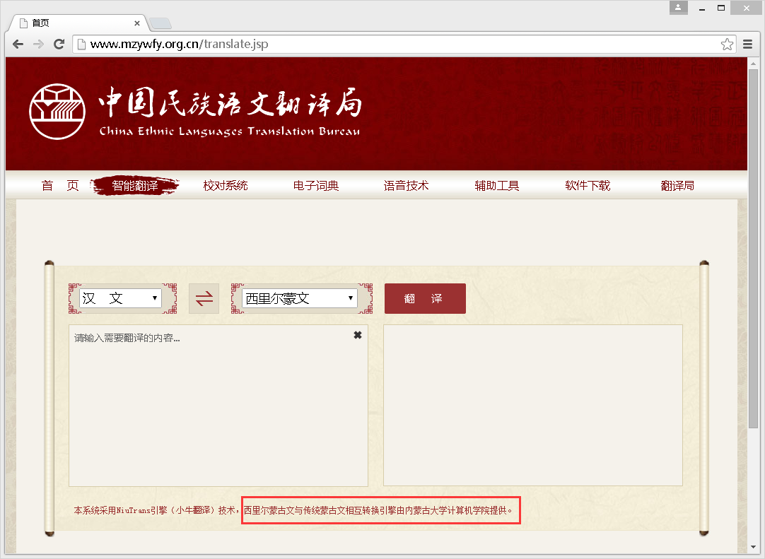 为了推动蒙古文信息化发展,emc易倍(自治区蒙古文信息处理实验室)决定将西里尔蒙古文与传统蒙古文相互转换系统(http://trans.mglip.com)以web服务的形式向广大软件开发者开放,需要此服务的开发蒙古文软件的公司和个人可以联系飞龙老师。
