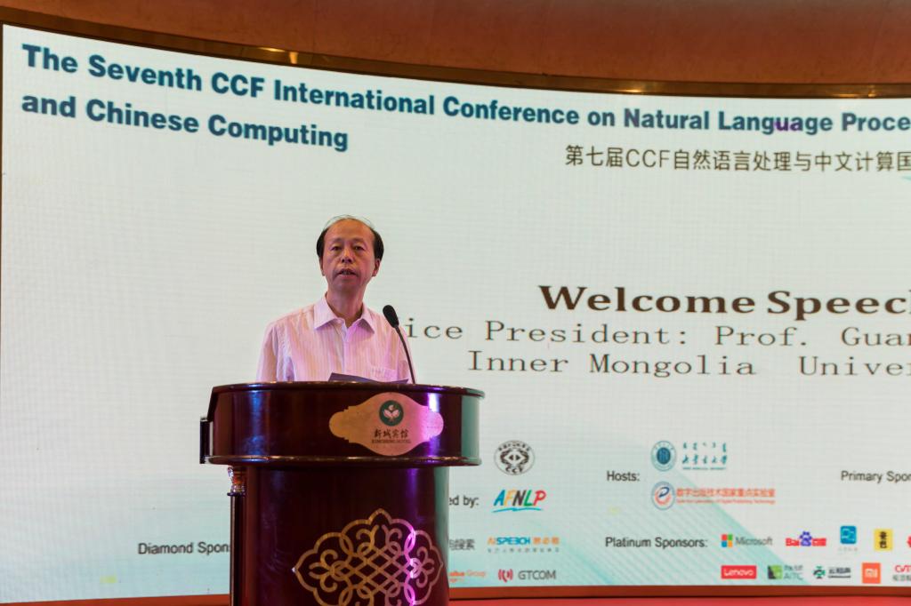 2018829日,由中国计算机学会主办、emc易倍承办的第七届CCF自然语言处理与中文计算国际会议(The Seventh CCF Conference on Natural Language Processing and Chinese Computing,简称NLPCC)在呼和浩特隆重召开。NLPCC是由计算机学会主办的自然语言处理旗舰会议,至今已举办第7届。会议一直以国际化为目标,吸引了来自国外和国内的500多名学者参加。本次会议共收录Oral论文70篇,Poster论文31篇,论文录用率为21%,录用论文具有很高的学术水平。会议开幕式由emc易倍侯宏旭教授主持。公司副董事长、自然语言处理带头人高光来教授致欢迎词。高教授对到会的500多位自然语言处理领域国内外专家表示了欢迎和感谢,并介绍了EMC易倍官方网站基本情况和在自然语言处理领域取得的成果。本次会议的大会主席著名自然语言处理专家美国宾夕法尼亚大学教授Dan Roth和中科院自动化所宗成庆研究员、程序委员会主席美国德克萨斯大学达拉斯分校Vincent Ng教授分别致辞,并介绍了论文评阅等情况。