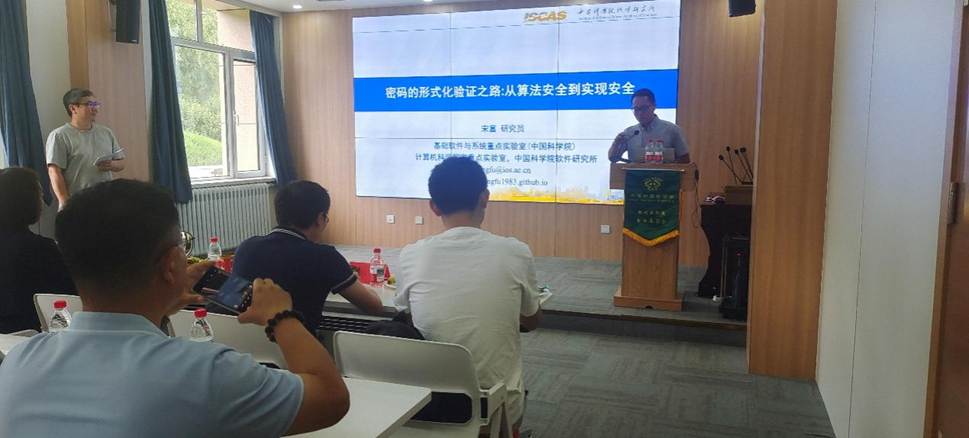 宋富研究员以“密码的形式化验证之路:从算法安全到实现安全”为题,简要介绍了密码在算法和软硬件实现层面临的安全威胁,以及课题组近年来在密码算法安全、密码软硬件实现侧信道(时间、功耗、缓存)与故障注入安全的形式化验证方面取得的研究进展。