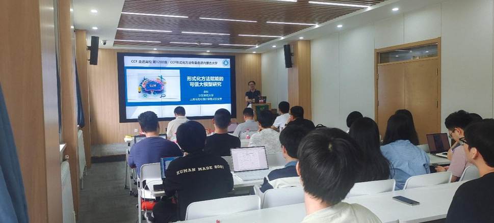 李钦副教授以“形式化方法赋能的可信大模型研究”为主题,聚焦形式化方法与大模型技术的交叉融合作了学术报告。并介绍了课题组近期在该研究领域的一些进展,如构建基于形式化定义的可信评测体系、基于形式化验证的大模型生成结果正确性验证框架等。