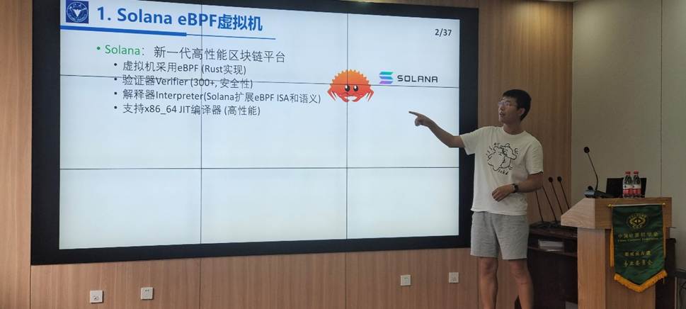 袁胜浩研究员以“面向Solana区块链eBPF指令集的完整形式语义研究”为主题,介绍了其团队首次为Solana区块链平台智能合约中使用的eBPF字节码语言提出的形式语义及语义验证框架,并展示了该语义模型在Solana eBPF虚拟机核心组件形式化中的潜在应用价值。