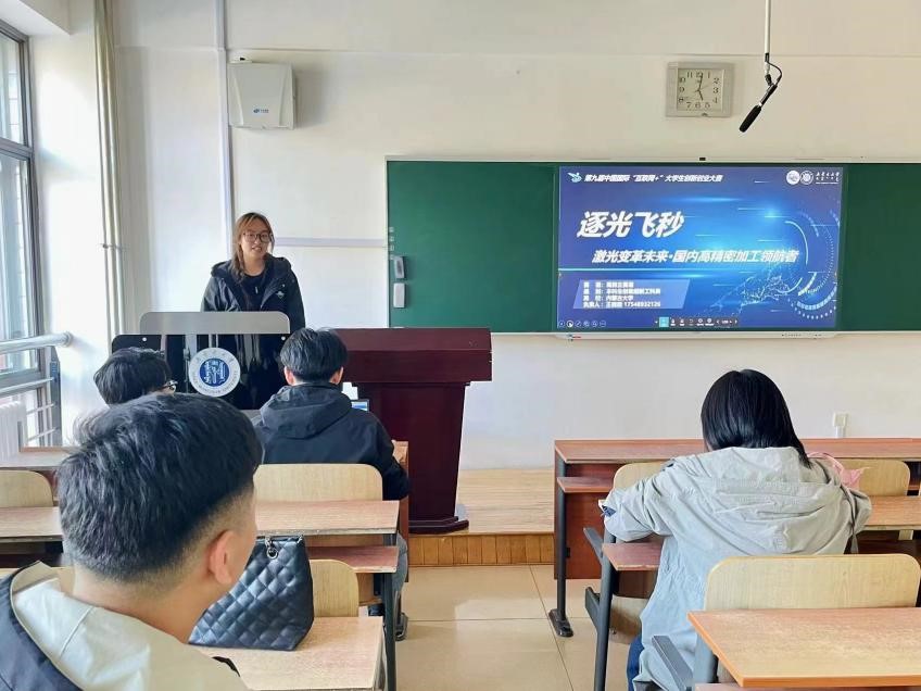 物理科学与技术公司王微微和郑冬生同学介绍了他们在“互联网+”老员工创新创业大赛的参赛项目《逐光飞秒——高精密加工飞秒激光装备领航者》。