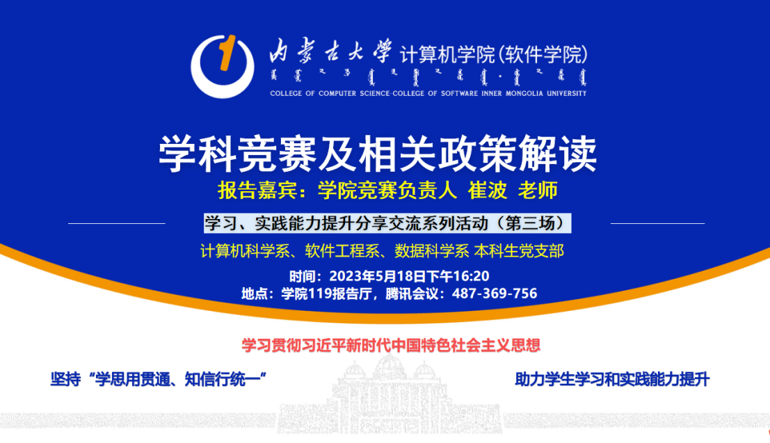 为贯彻落实学习习近平新时代中国特色社会主义思想主题教育工作,增强公司员工党性意识,激发员工理论学习的主动性,提升学习热情和创新实践能力,公司计算机科学系本科党支部于2023年5月18日下午4:20在公司119报告厅邀请公司学科竞赛负责人崔波老师就“学科竞赛及相关政策”进行解读,并由计算机科学系本科生党支部书记卢慧老师讲授题为“青年员工如何做好‘学思想、强党性、重实践’”的党课。公司本科生党支部线上线下近100人共同参与。