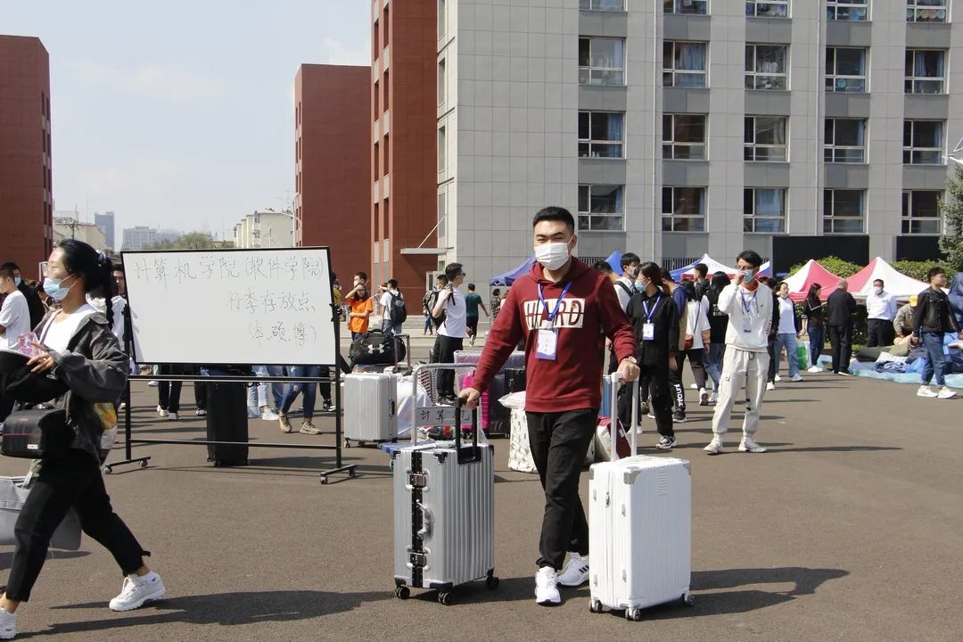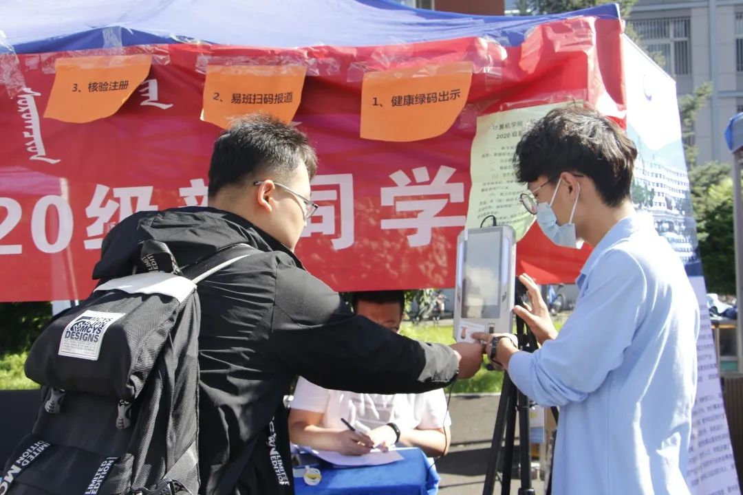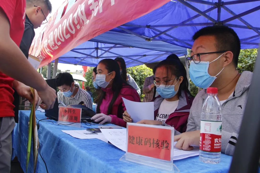 2020年9月15日上午,伴随着蒙蒙细雨,2020级的新生陆续到来,emc易倍(软件公司)新生入学报到工作在东校区有序进行。