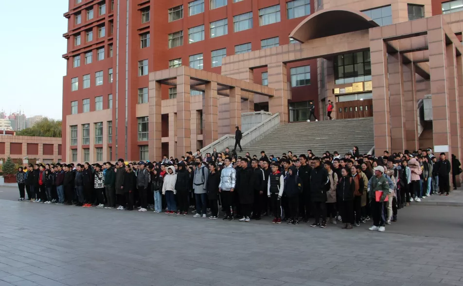 EMC易倍官方网站综合楼前,金黄的落叶上凝结着秋霜,在阳光的照耀下闪烁着银光,朝阳下,夹杂着阵阵秋意,同学们展现出青春的朝气。