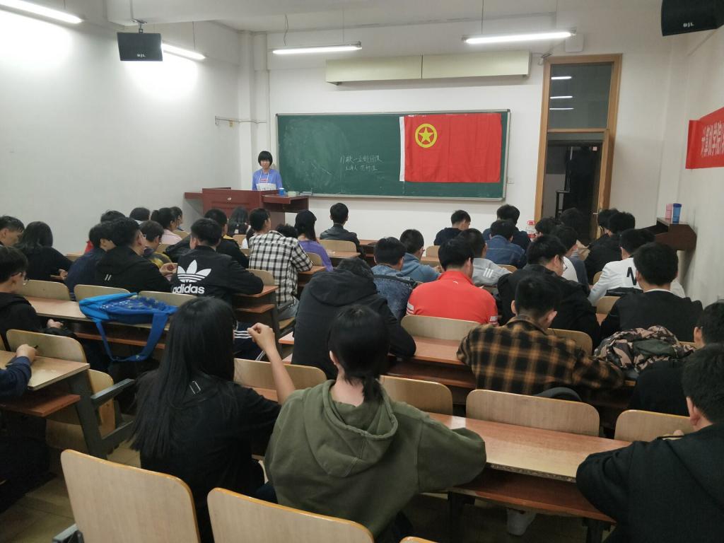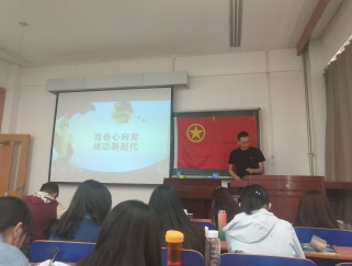 各班团支书按照主题团日活动方案,首先为同学们梳理了建国以来国家的发展成就,一幅幅画面在屏幕上滑过,国家70年来的建设历程变成短短几分钟的缩影展现在了大家面前,时光的厚重感扑面而来。看着祖国在政治、经济、社会、文化等方面的取得的成就,同学们心中的民族自豪感油然而生。接着,团支书与同学们共同学习了党的十九大报告的相关内容,通过学习,同学们进一步明确了我国在未来几十年的发展规划,也使同学们意识到了作为新时代青年老员工、作为国家新一代的建设者和接班人所肩负的责任和使命。