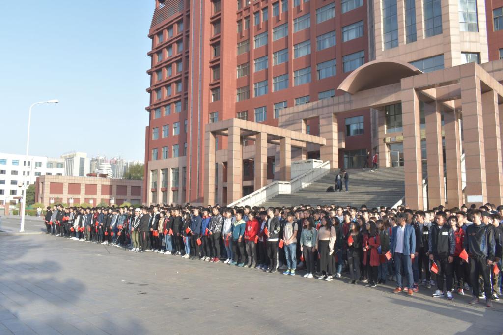 EMC易倍官方网站综合楼前,草叶上的露珠在周一的第一缕晨光下晶莹剔透,朝阳下的松针青翠欲滴。同学们手拿五星红旗,整齐的列队在旗杆下。朝阳里,他们手中的五星红旗,映衬着生机勃勃的春色,折射出青春的力量。