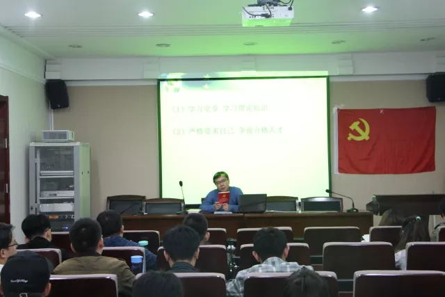 首先,孙老师为大家讲解了入党誓词和党员应当履行的义务。孙老师指出,作为一名合格的党员干部,应当廉洁自律,不断培养高尚情操,将全心全意为人民服务进行到底。随后,孙老师就“两学一做”进行了解读,带领大家学习了党章党规,重温了习近平总书记系列讲话精神,并对“四个坚持”、“四个培养”等内容进行了详细阐述,深化了党内教育,在思想、组织、作风、纪律等方面有了新的认识,体现出支部成员的先进性和纯洁性。最后,孙老师讲述了共产党的早期历史,并向大家传达了延安精神的深刻内涵。全体成员对于党的发展历程有了更加细致的了解,并感受到了革命先烈们高尚的品格、修养以及我党强大的号召力,从而更加坚定了成为一名优秀党员的理想信念。