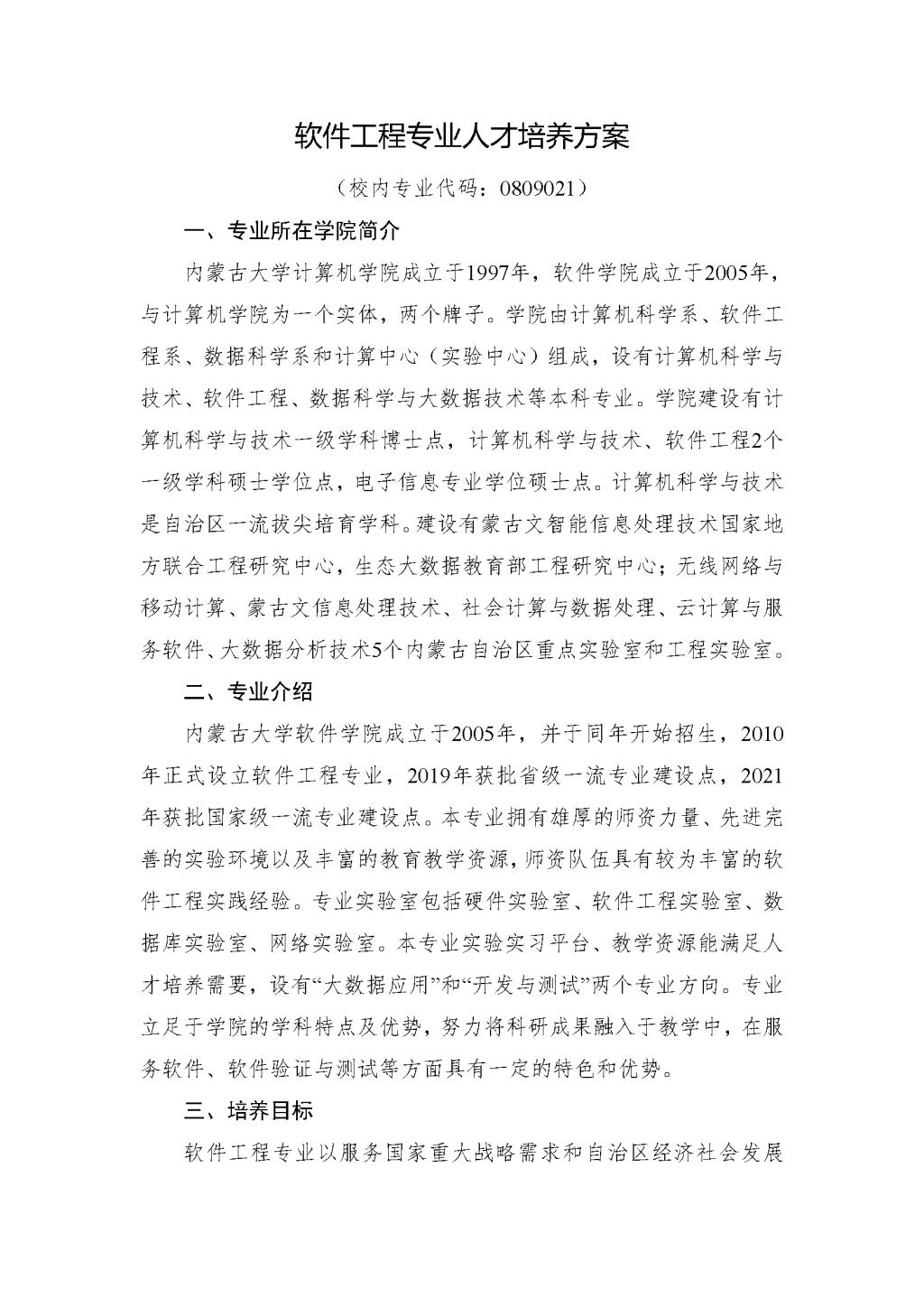 软件工程专业人才培养方案(2023版)