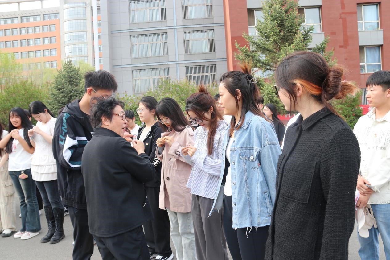 在入党宣誓仪式结束后,院领导为部分党员宿舍代表亲自张贴“党员宿舍”铭牌,并深入宿舍与同学们进行了亲切谈话、交流。