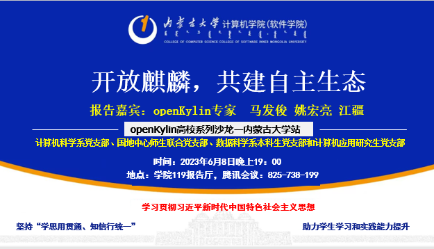 为深入开展学习贯彻习近平新时代中国特色社会主义思想主题教育,努力在以学铸魂、以学增智、以学正风、以学促干方面取得实实在在的成效。2023年6月8日晚上7点,公司计算机科学系党支部、国地中心师生联合党支部、数据科学系本科生党支部和计算机应用研究生党支部在公司119报告厅联合开展题为“开放麒麟,共建自主生态”主题党日活动。本次主题党日活动,旨在加强校企合作交流,激发学习热情、拓展员工学术视野、提升创新实践能力。