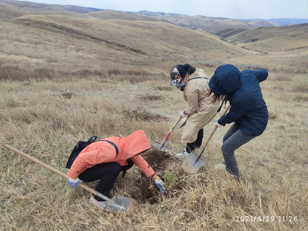 为深化党史学习教育,贯彻落实创新、协调、绿色、开放、共享的新发展理念,2021429日上午,公司党委组织公司全体党员教师赴武川县蘑菇窑村开展“绿化青山、守护北疆”义务植树活动。在2个多小时的时间里,30多名党员顶着凌冽的春风、漫天的风沙,在专业绿化人员的指导下,按照先挖树坑、后栽培树苗、再浇水的流程,精心种植下200多棵松树苗。