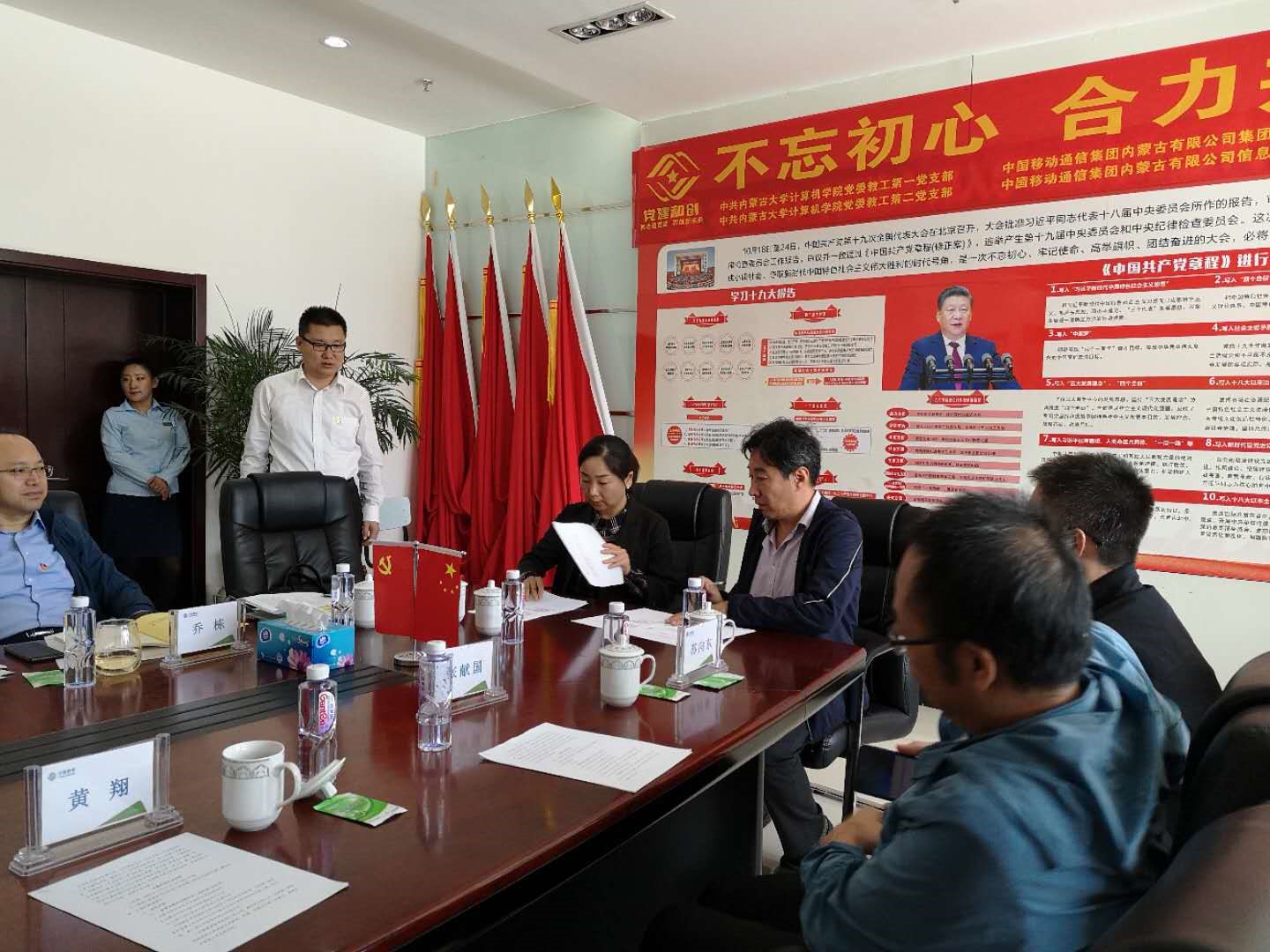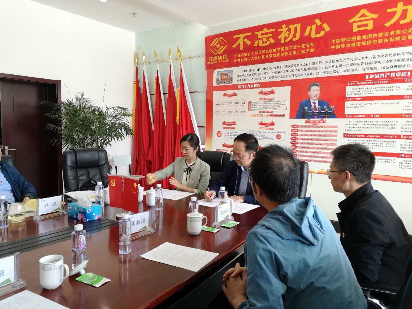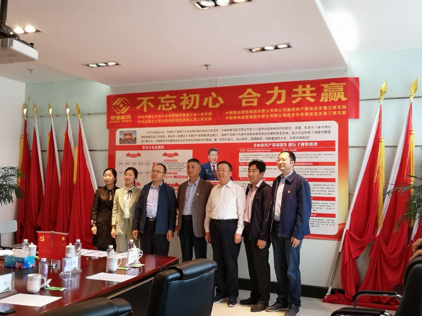 为深入学习贯彻党的十九大精神和党的十九届二中、三中、四中全会精神,坚持以习近平新时代中国特色社会主义思想为指导,落实新时代党的建设总要求,充分发挥基层党支部的战斗堡垒作用,创新党建工作载体,激发党员的活力,公司党委教工第一、第二党支部与中国移动通信集团内蒙古有限公司信息技术部第二党支部、集团客户部第三党支部经过积极沟通交流,一致认为双方联合开展“党建和创”活动能充分挖掘、发挥各自在党建、人才、教育、科技、文化、信息等不同方面的资源优势,共同构建“资源共享、优势互补、互相促进、共同提高”的党建工作新格局,有利于提升党建工作水平,有利于促进事业发展,有利于促进校企深度合作。