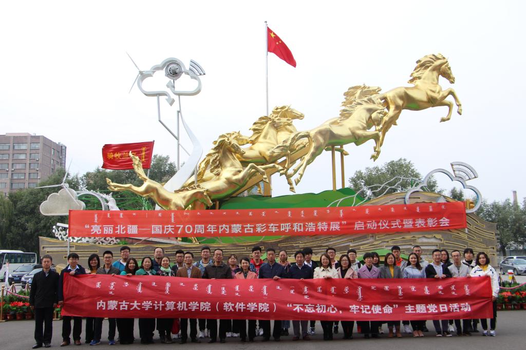 在展览馆门前广场,全体党员共同参观了彩车。进入展馆,通过阅读展板图文、聆听讲解员解说、VR虚拟体验等方式,全体党员对内蒙古自治区的光辉发展历程有了进一步的了解。