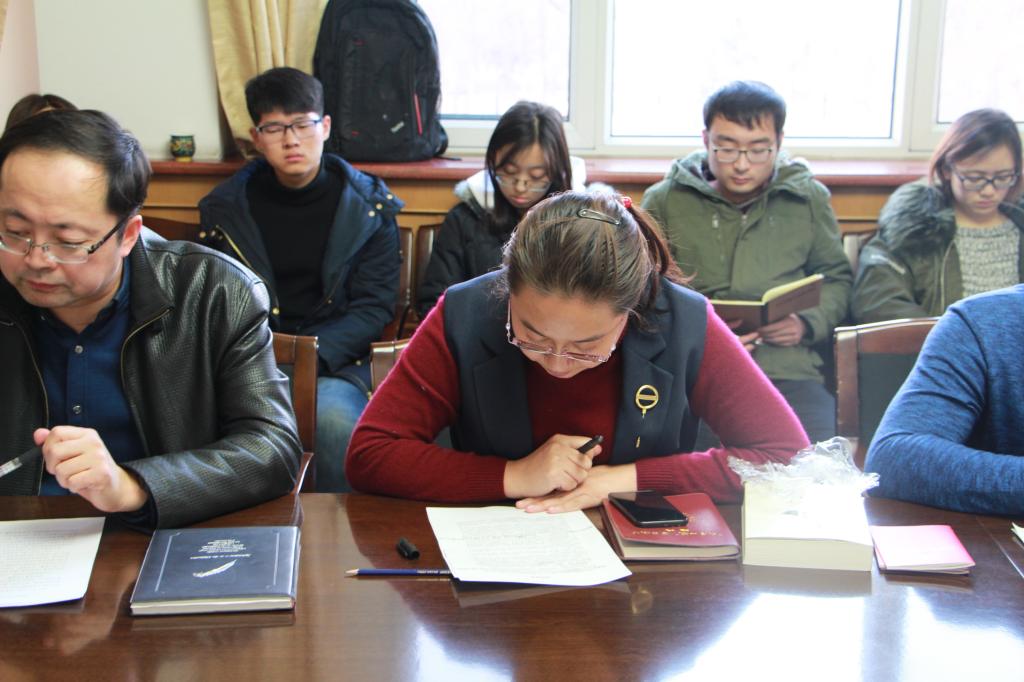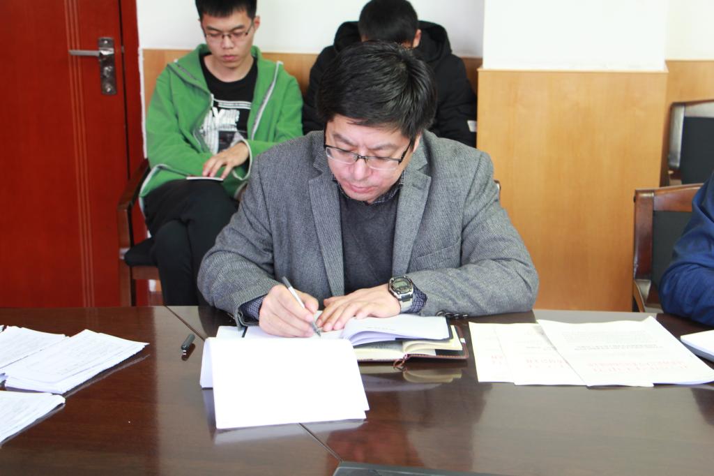大会共分为三项。第一项,各党支部书记围绕所在党支部2017年开展基层党建工作、落实党建责任制等情况进行述职报告。第二项,李广武书记,侯宏旭,孙涛两位委员在听取各党支部书记的述职汇报后,对各党支部过去一年的基层党建工作逐一进行了相应的点评,肯定了各党支部工作中的突出表现,也指出了其工作中存在的问题,并结合实际情况对各党支部接下来的基层党建工作提出了更高的要求。其中,李书记指出,我们要始终把爱党爱国作为最高的信仰和行动,坚决拥护中国共产党的领导,坚定理想信念,永远跟党走,为党的伟大事业做出自己的贡献。此次述职评议大会就是为了让每一位党员都能够向身边的优秀楷模学习,从小事做起,从严要求自己,让每个党支部得到更好的发展。大会第三项,全体与会人员填写了对各支部的意见测评表,计科网工党支部书记刘雪峰及员工党员代表对意见测评表进行了整理汇总。