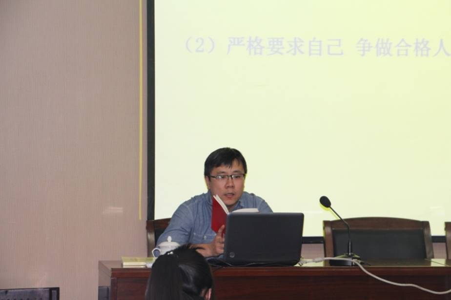 首先,孙涛老师带领大家温习了《中国共产党章程》,从总纲展开讲述,针对入党誓词、党员的义务、党员的权利、党的组织制度和纪律等做了详细的讲解。他表示,党章是中国共产党树立的旗帜,集中体现了党的性质宗旨、政治主张、奋斗理想,以及对党员的基本要求,确定了党的重要制度,对推进党的事业、加强党的建设具有重要的指导作用。学习并遵守党章能有效的加强党员意识。他要求大家不断重温党章党规,进一步明确做合格党员的标准。其次,孙涛老师对《中国共产党廉洁自律准则》和《中国共产党纪律处分条例》做了介绍,他强调员工党员尤其是员工党员干部要秉持“先公后私 克己奉公 清白做人 勤俭节约 吃苦在前 享受在后”的行为规范,发挥先锋模范带头作用。接下来,孙涛老师为大家阐述了习近平总书记系列讲话涉及的内容,他指出,习总书记系列重要讲话深刻回答了新的历史条件下党和国家发展的一系列重大理论和现实问题,是中国特色社会主义理论体系最新成果,把握了时代的趋势,顺应人民的期待,富有智慧和哲理,我们必须深入学习和思考。最后,孙涛老师针对如何做一名合格的员工党员对大家提出三点要求:一、努力学习,加强自我修养,做好本职工作;二、积极参加活动,提高综合素质,克己奉公,多做贡献;三、讲纪律,讲团结,讲正气,讲文明。他强调“两学一做”基础在学,关键在做。需要每一位党员长期坚持将党章党规以及习近平总书记系列讲话作为精神指引,坚定理念和信念,将“两学一做”内化于心,外化于行。